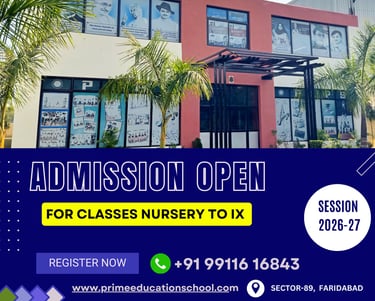Admission Open For Session 2026-2027 | For Admission & Enquiry Call Us:-+91 9911616843, 9718785005 | info@primeeducationschool.com